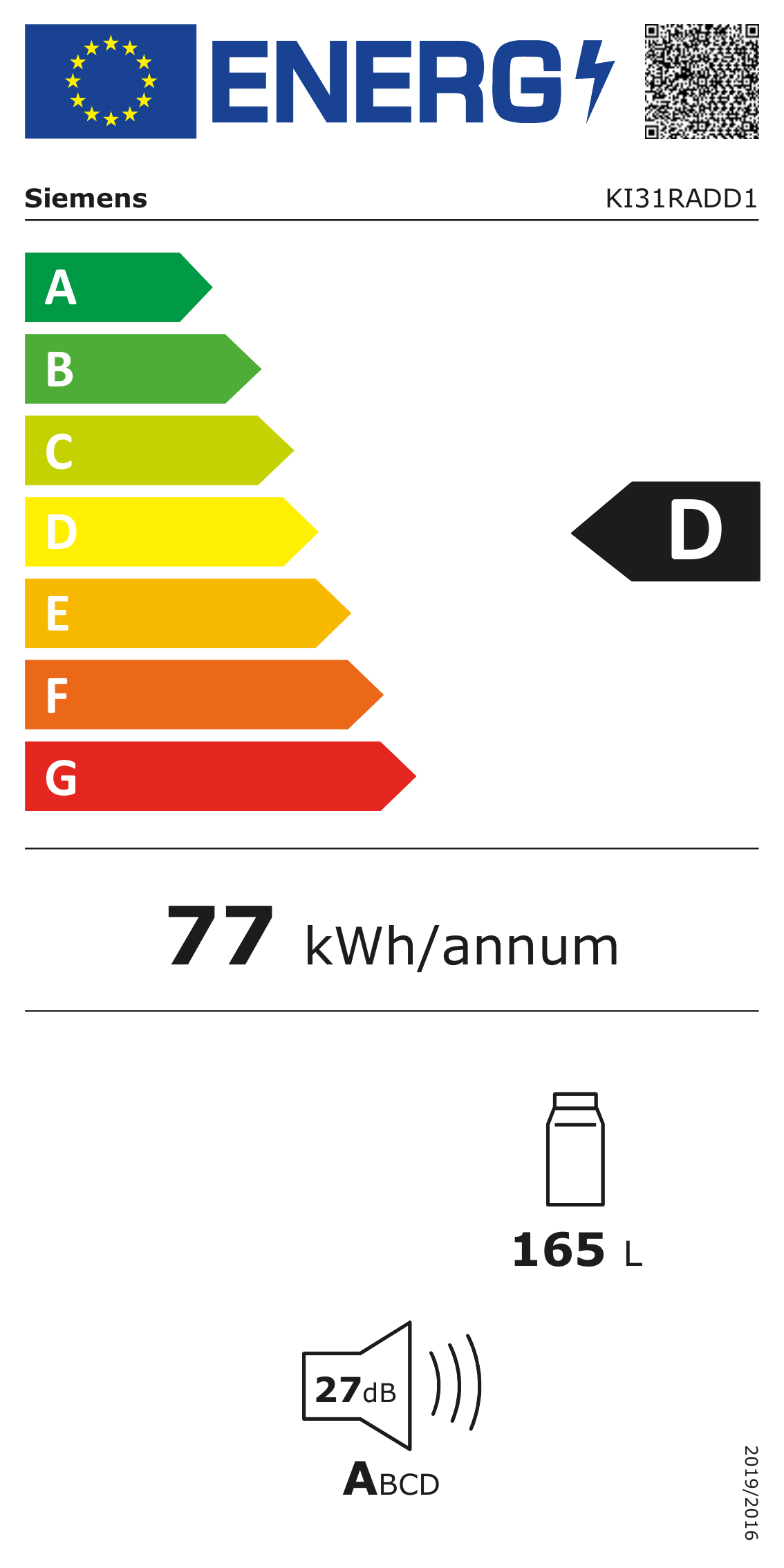Durchschnittlicher Energieverbrauch in Kilowattstunden pro Jahr77 kWh/Jahr