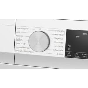 • Spezialprogramme: Automatik Sanft, Trommel Reinigen (mit Erinnerungsfunktion), Outdoor/Imprägnieren, Schleudern / Abpumpen, Schnell/Mix, Spülen, Super 30'/15', Hygiene, smartFinish